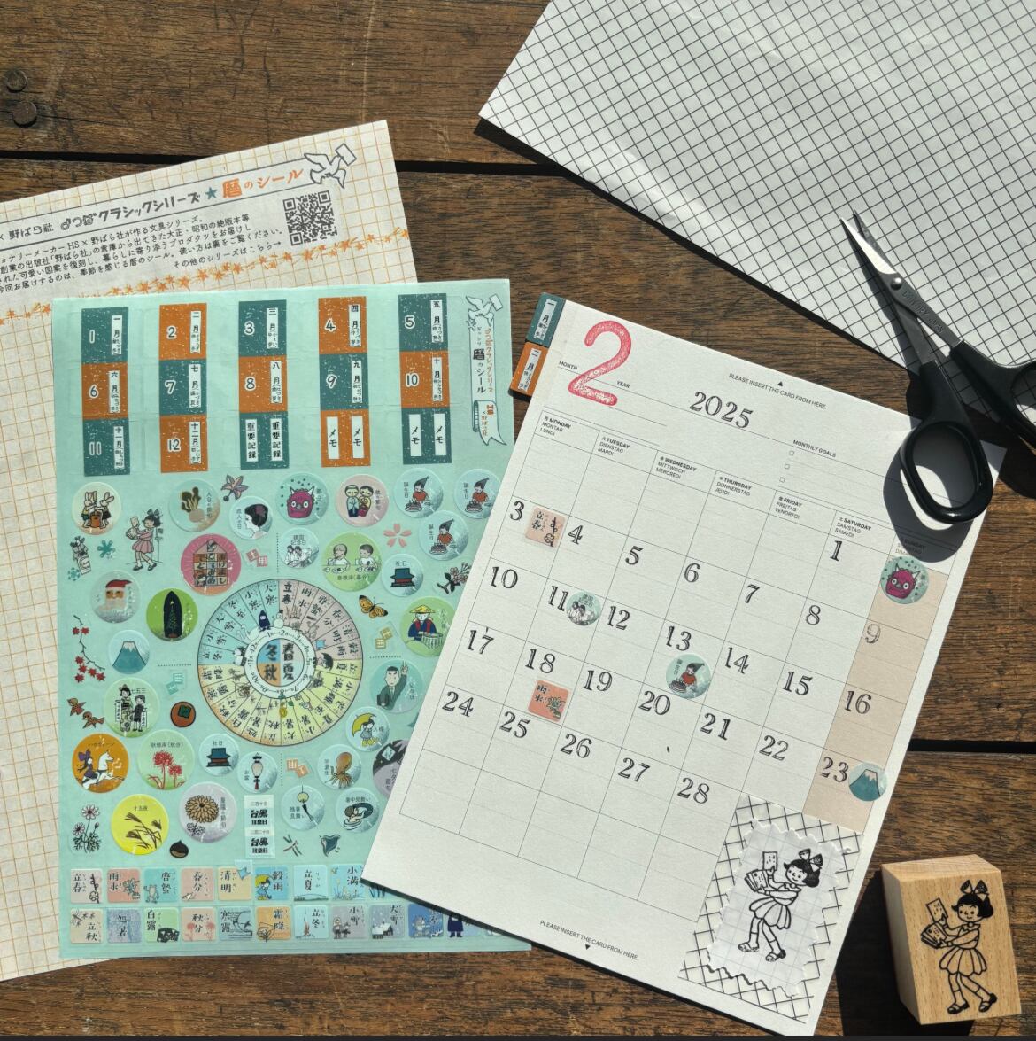 ダイアリーやライフログ帳など身近なノートにプラスして日本古来からの行事や季節を感じられる暦のシールです。