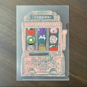 レトロな色合いのスロットマシーンと、カラフルなフルーツが描かれたデザインは、バッグに入れて持ち歩くだけで気分も明るく楽しくなりそう。