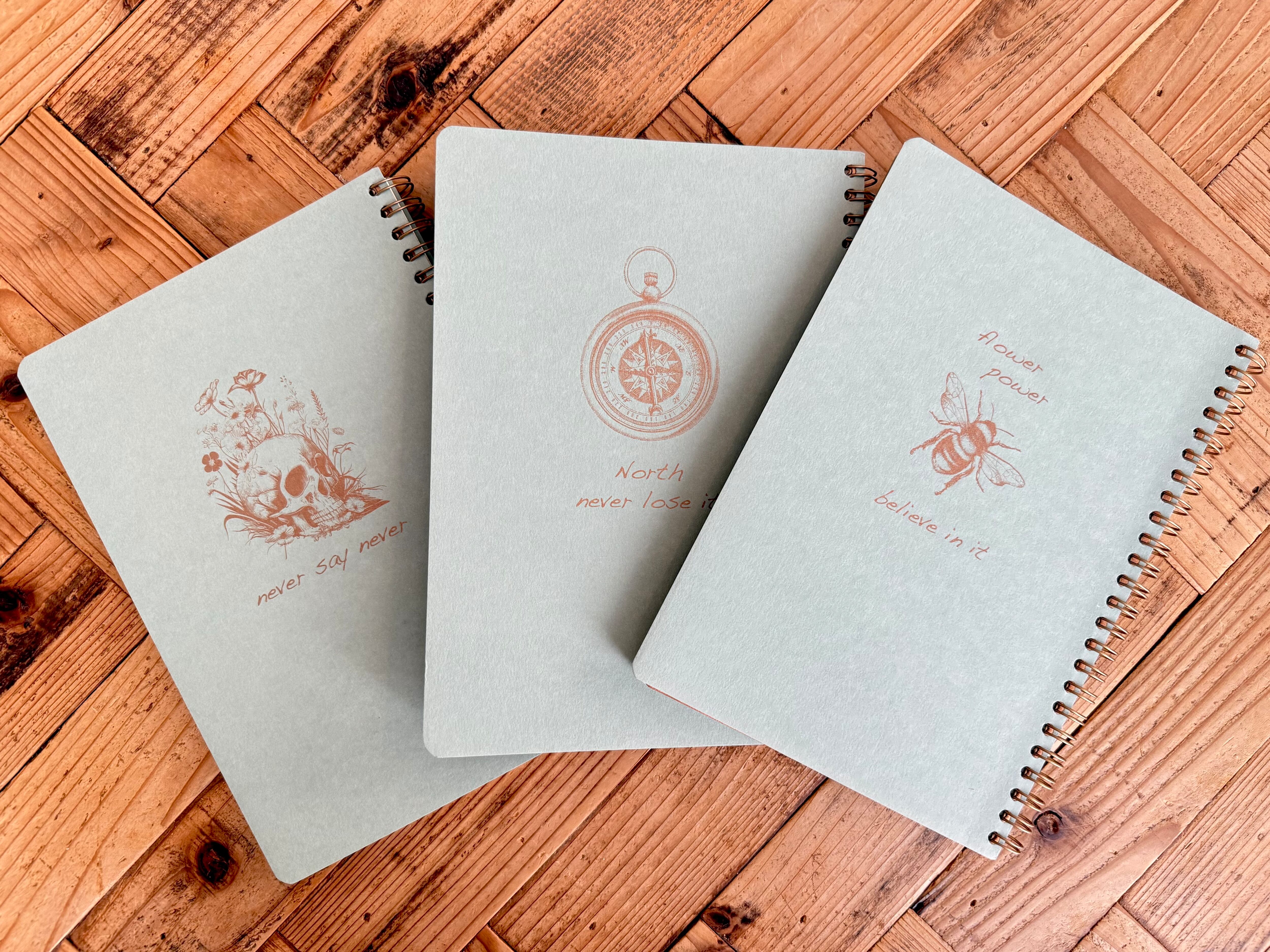 上質なカバー用紙と詩的なイラストで人気のシリーズ「フライングスピリット」の3ポケットノートは