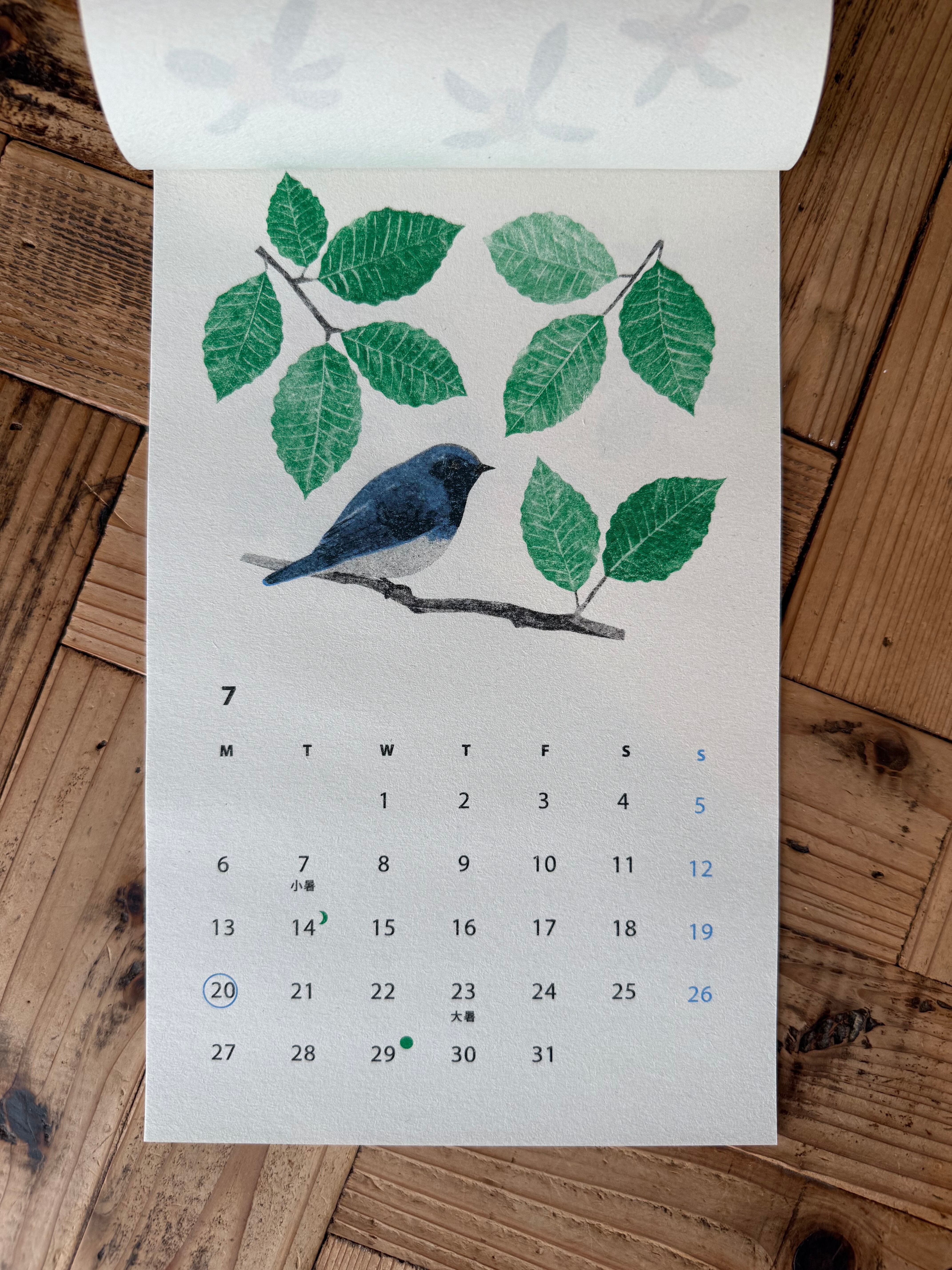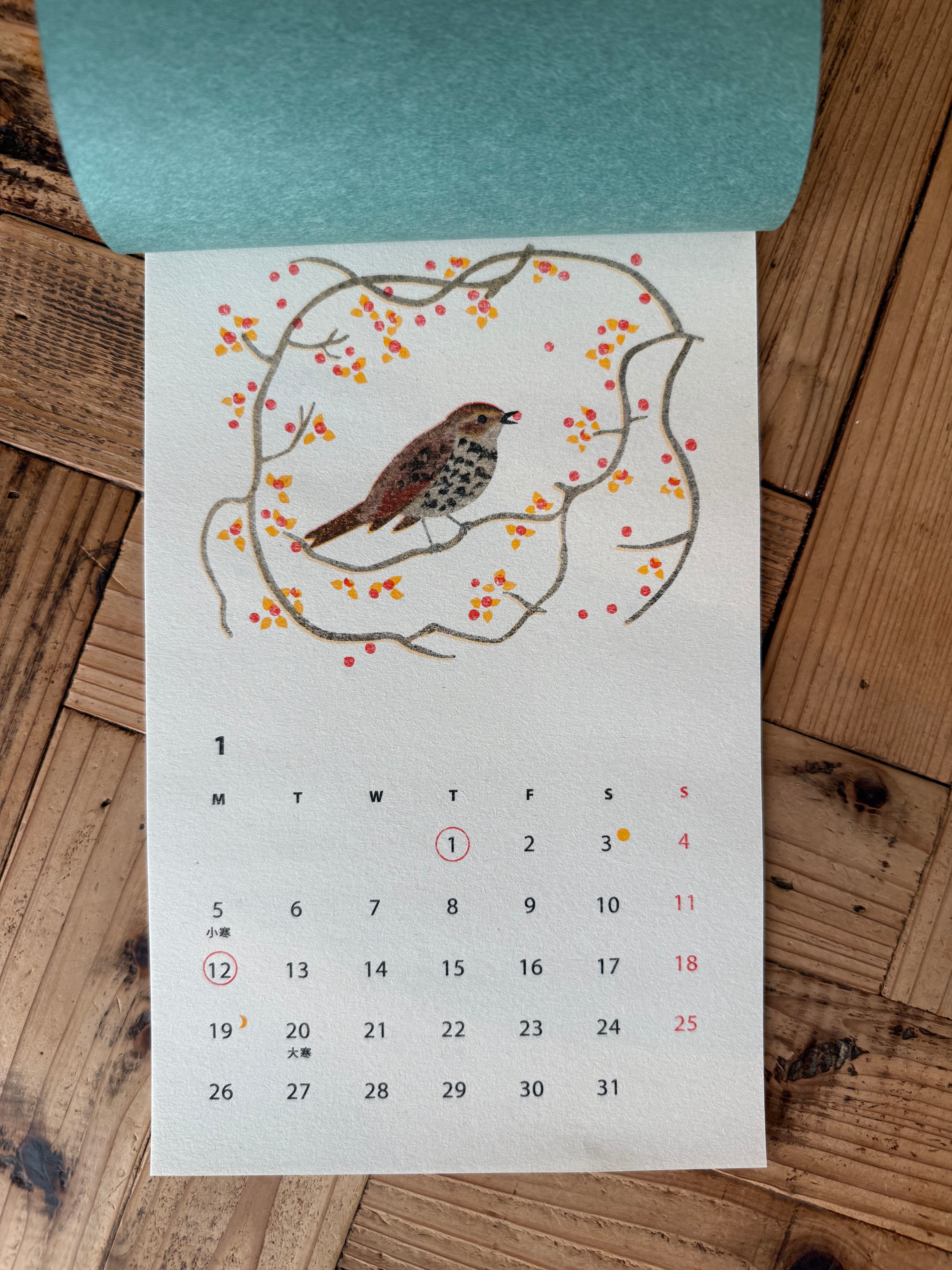 こちら2026年カレンダーは季節の植物と鳥が愛らしく描かれています。