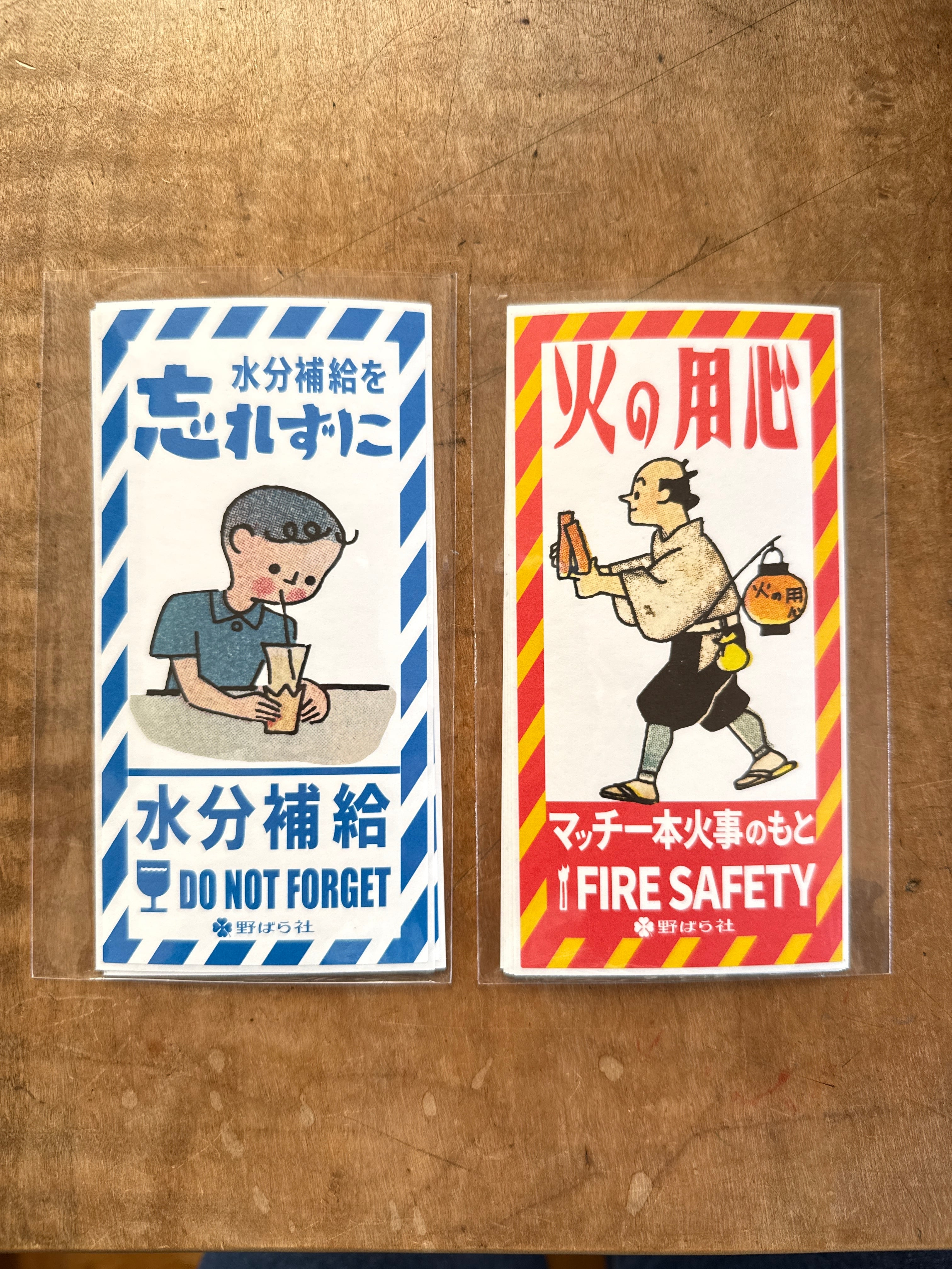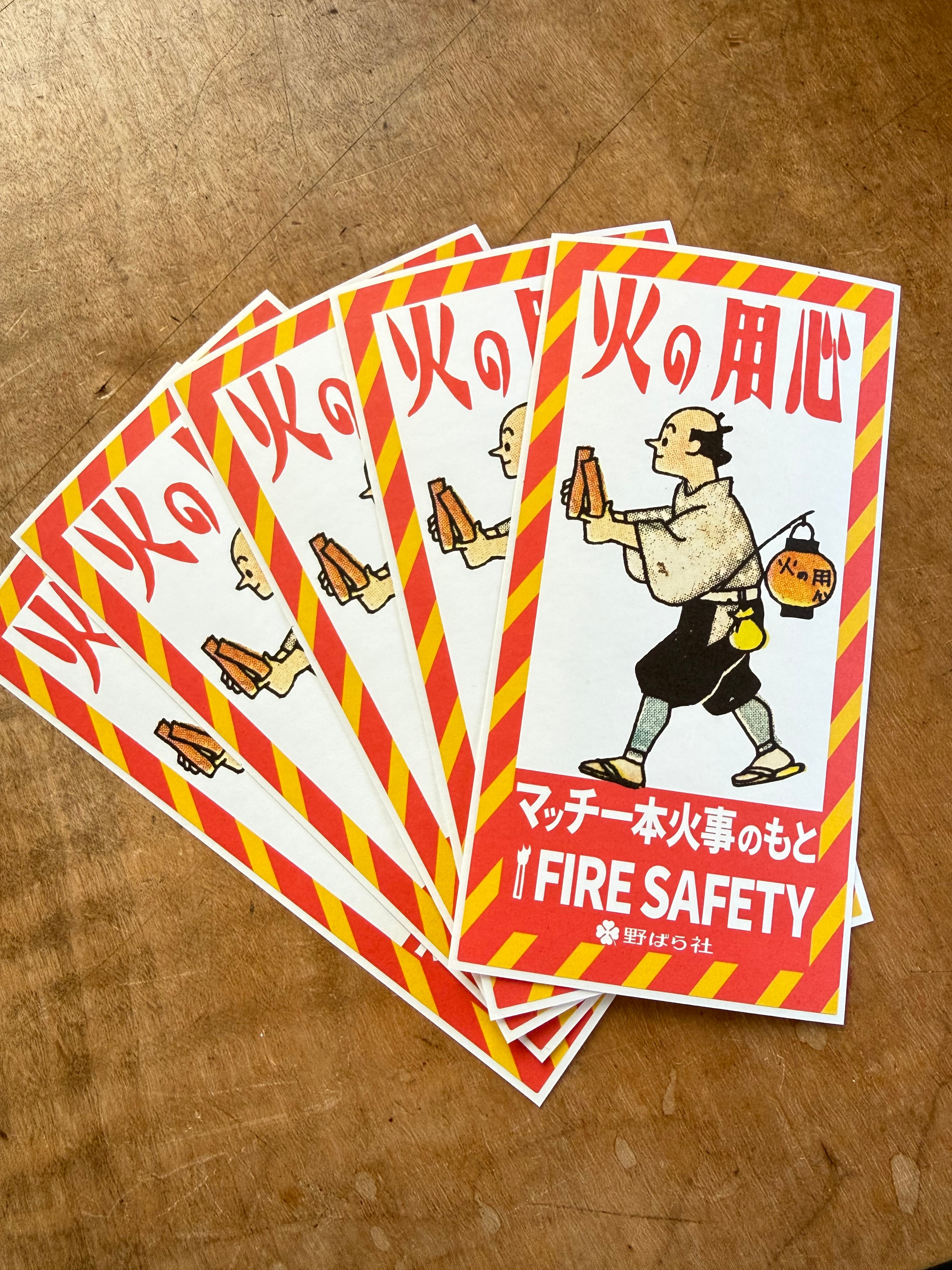 拍子木の音が聞こえてきそうな「火の用心」シールと