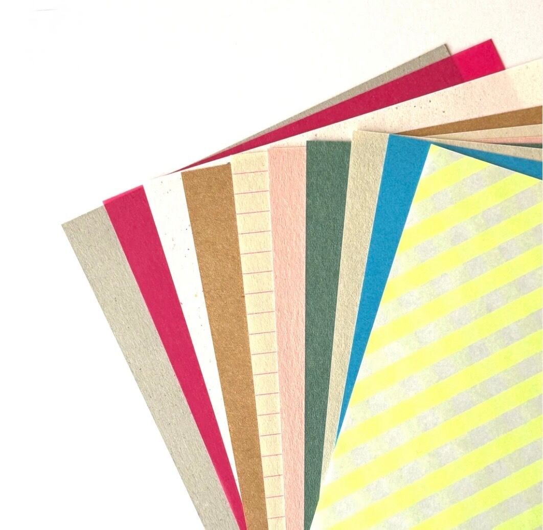 パリパリした紙、ざらざらした紙、透明な紙、無地に方眼罫など、
