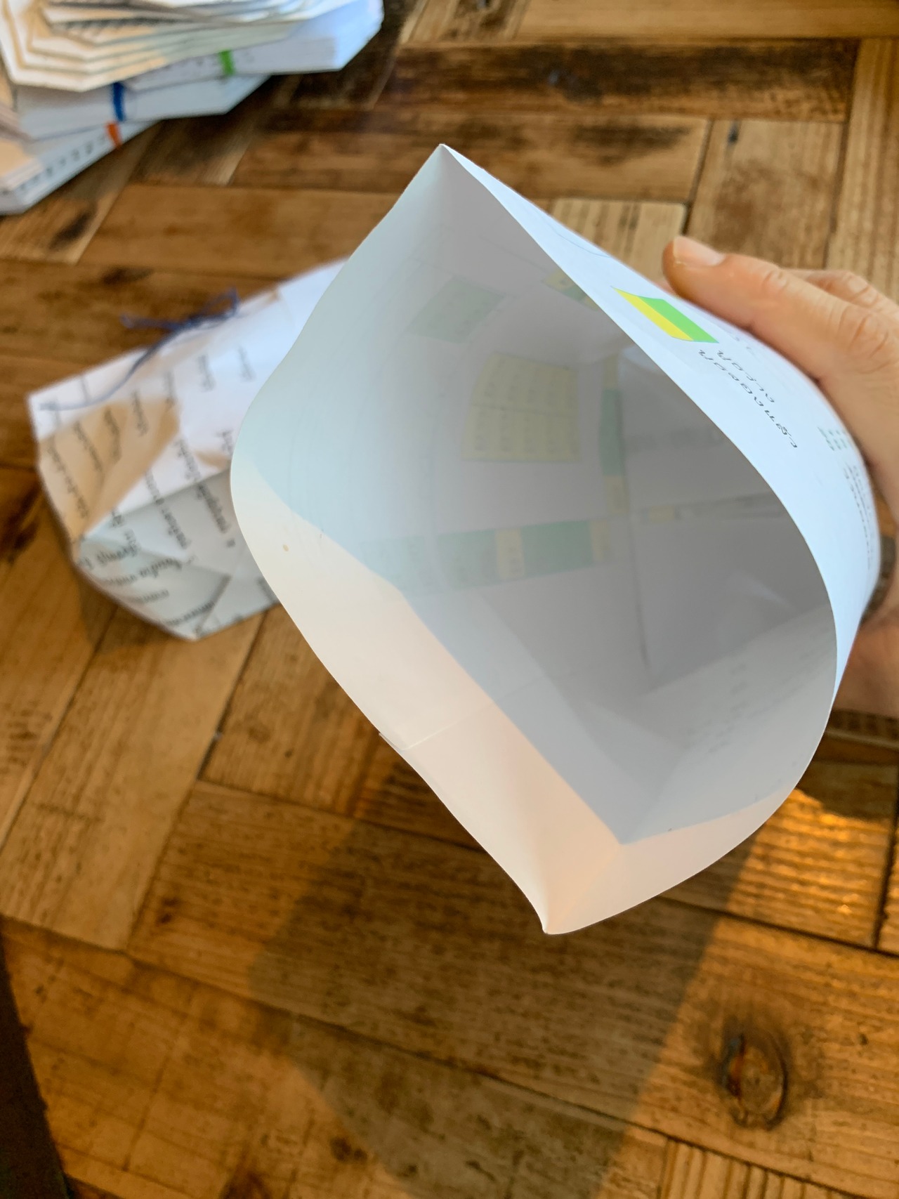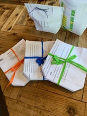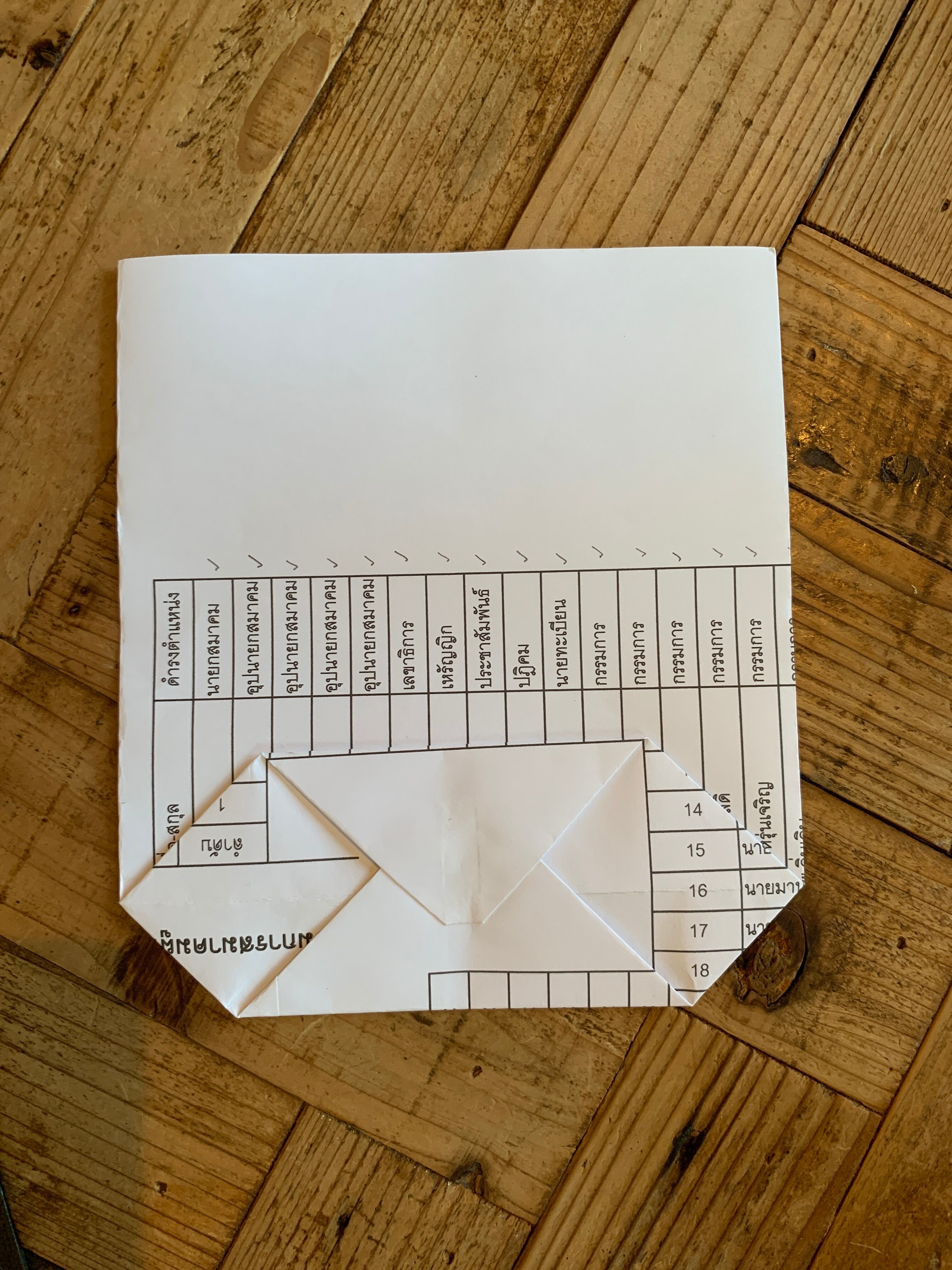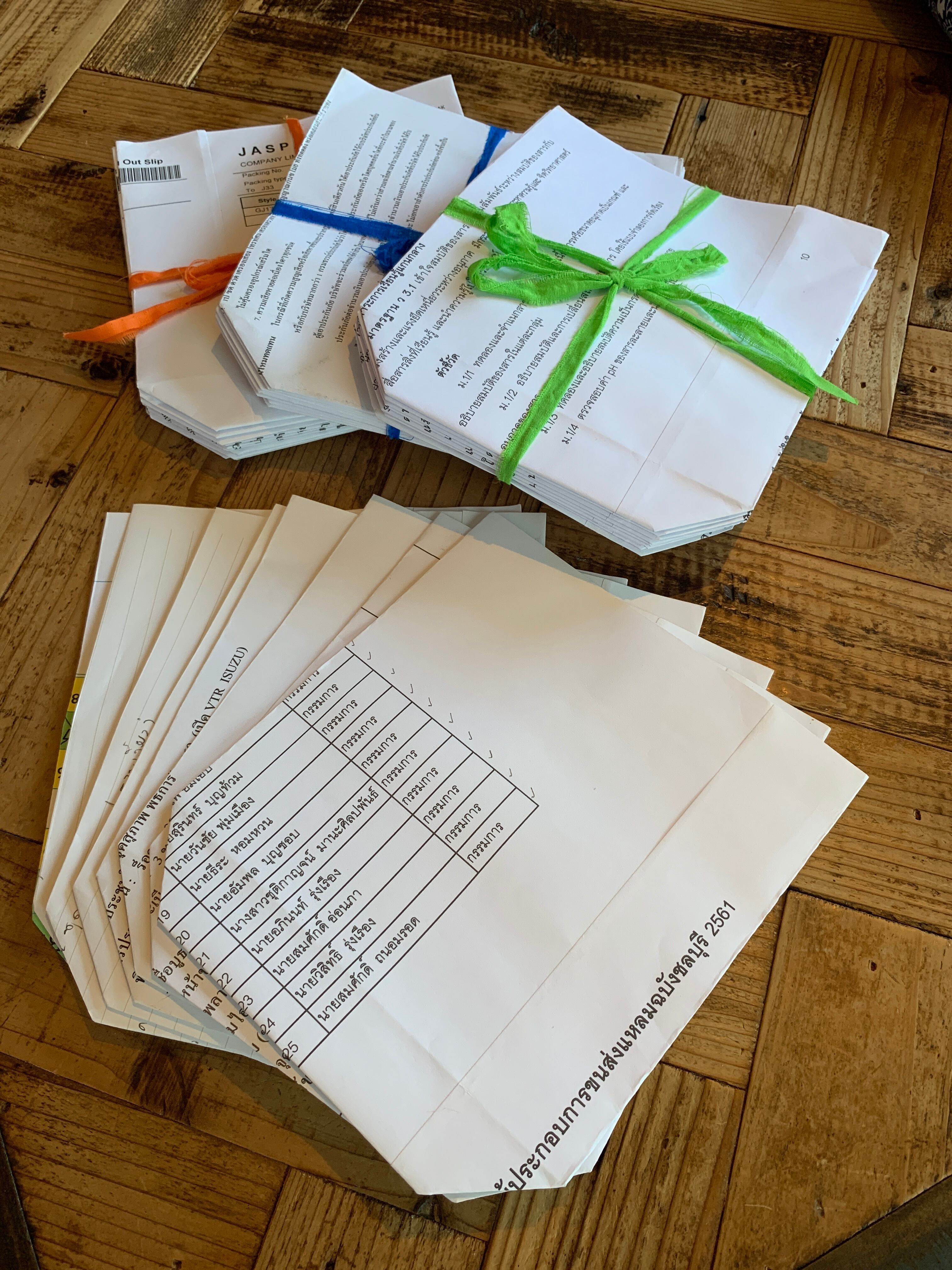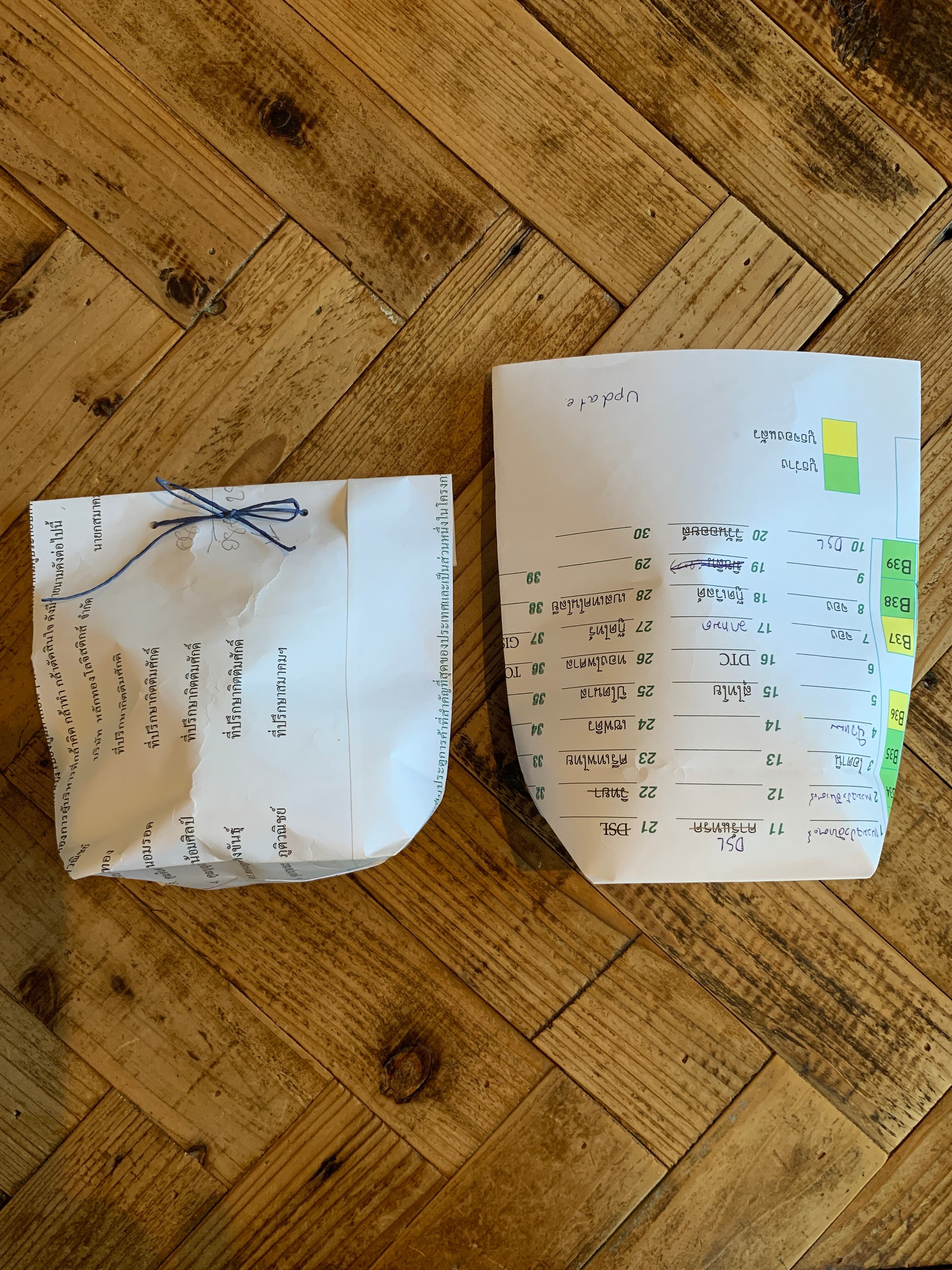 タイの学校で使われていたプリントやテスト用紙などを使って、地元のお母さん達が作ったお手製紙袋です。