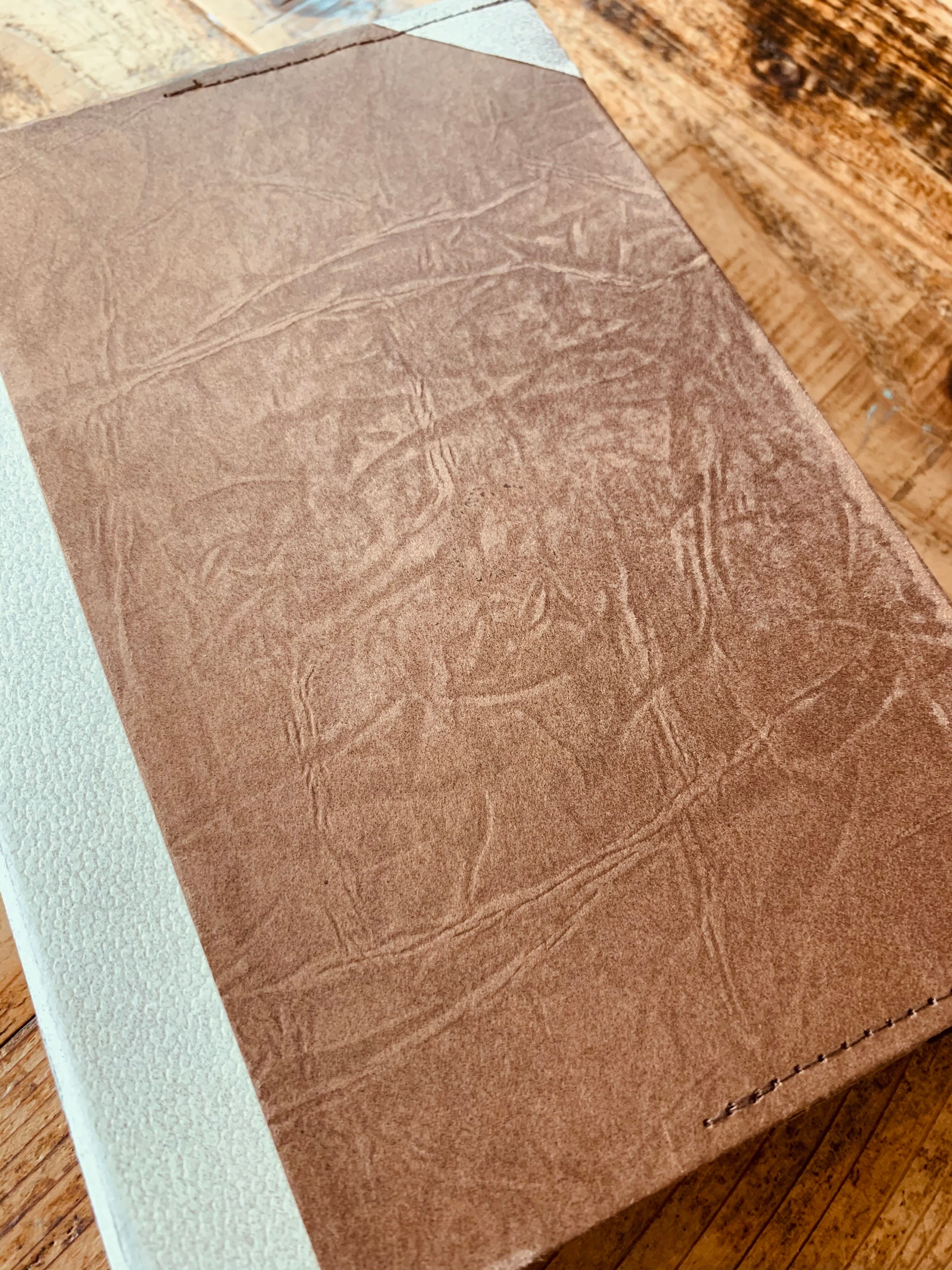 留めゴムつき仕様で、文庫本サイズの無地ノートがそれぞれ一冊ずつ付いています。