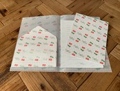 昭和から使用されていた文房具屋さんやファンシーショップの持ち帰り袋として使用されていた包装紙の柄が文房具になったファンシーペーパーシリーズのレターセットとクリアファイルです。