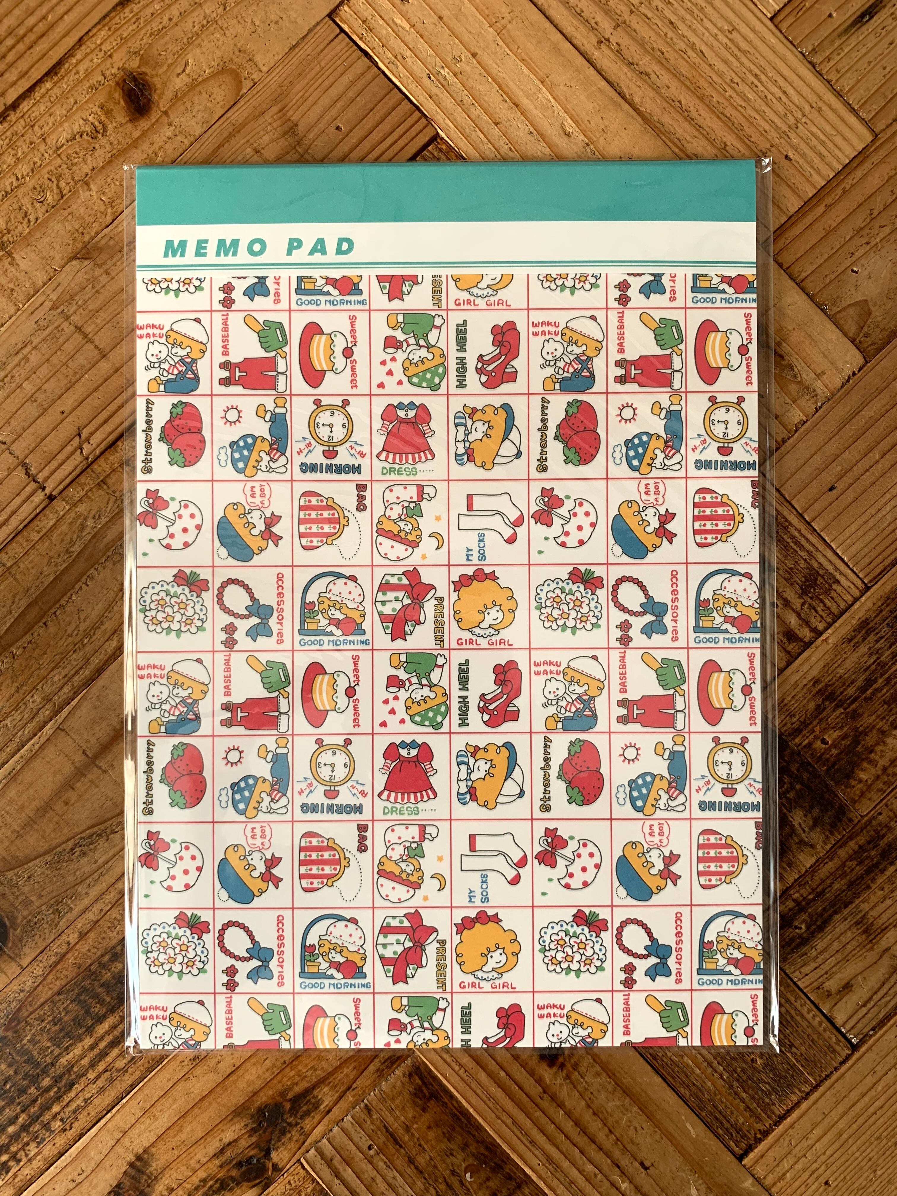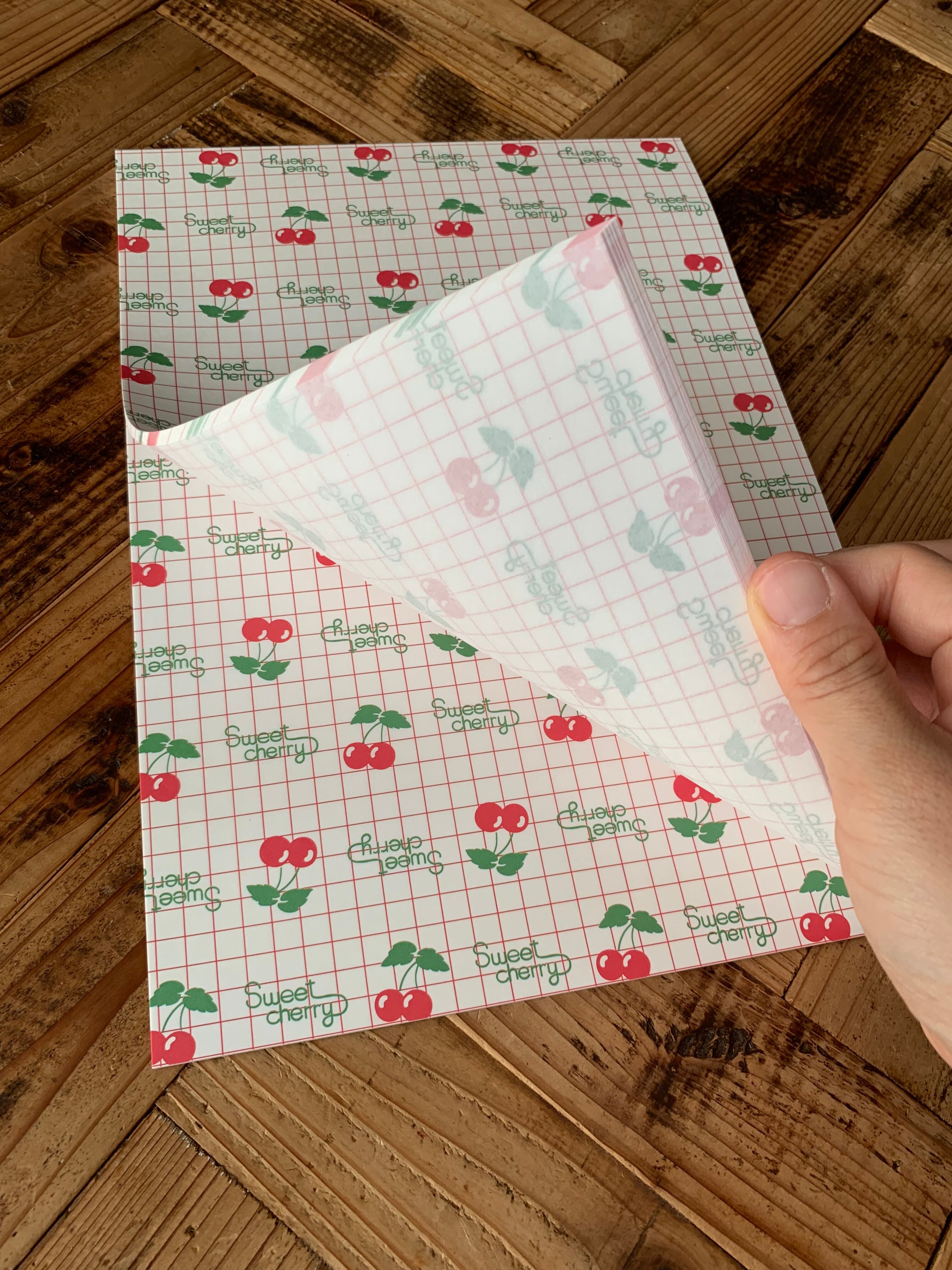 包装紙の柄が文房具になったファンシーペーパーシリーズのA4メモパッドです。
