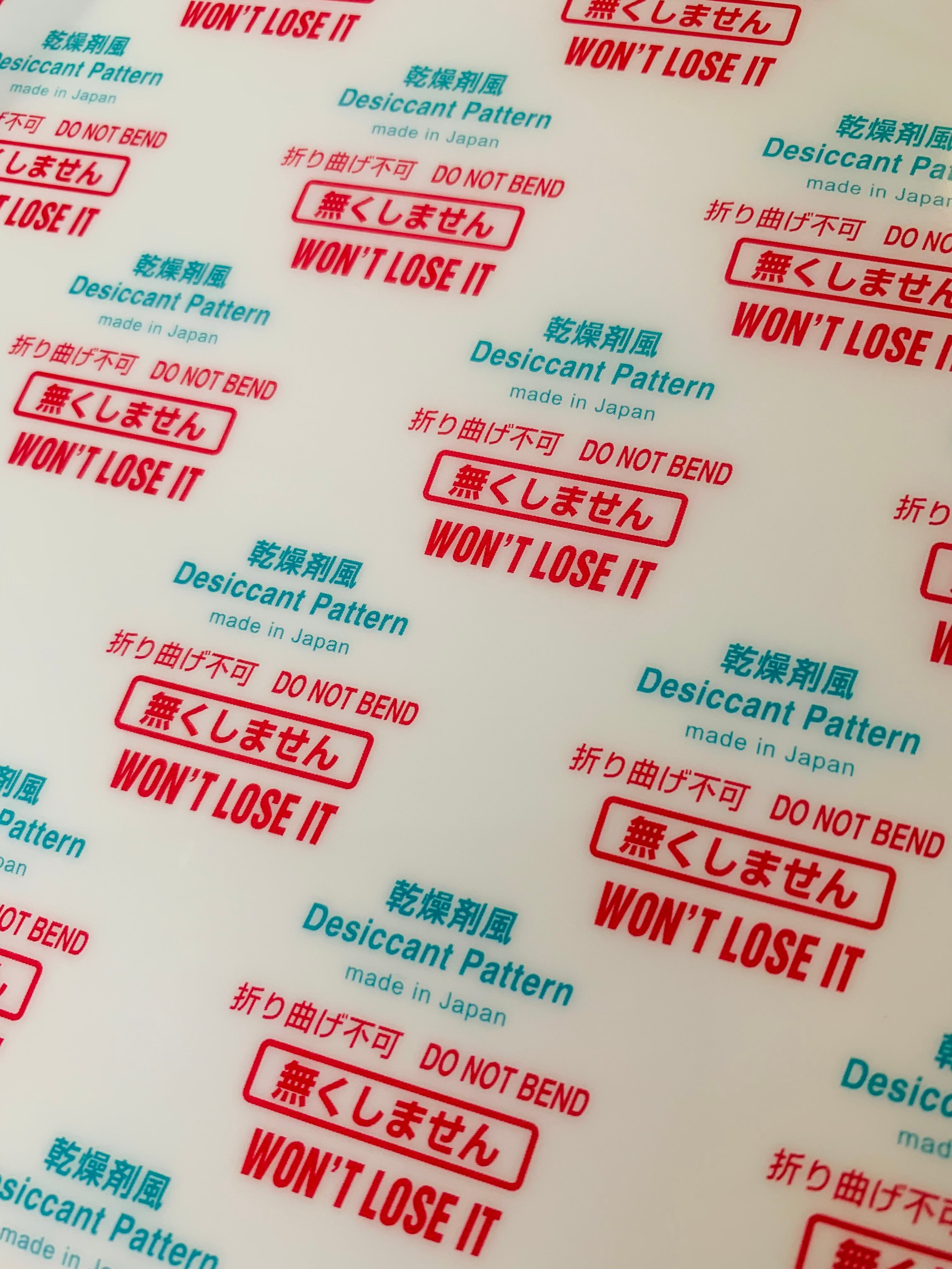 乾燥剤柄のクリアファイル。「食べられません」の部分には