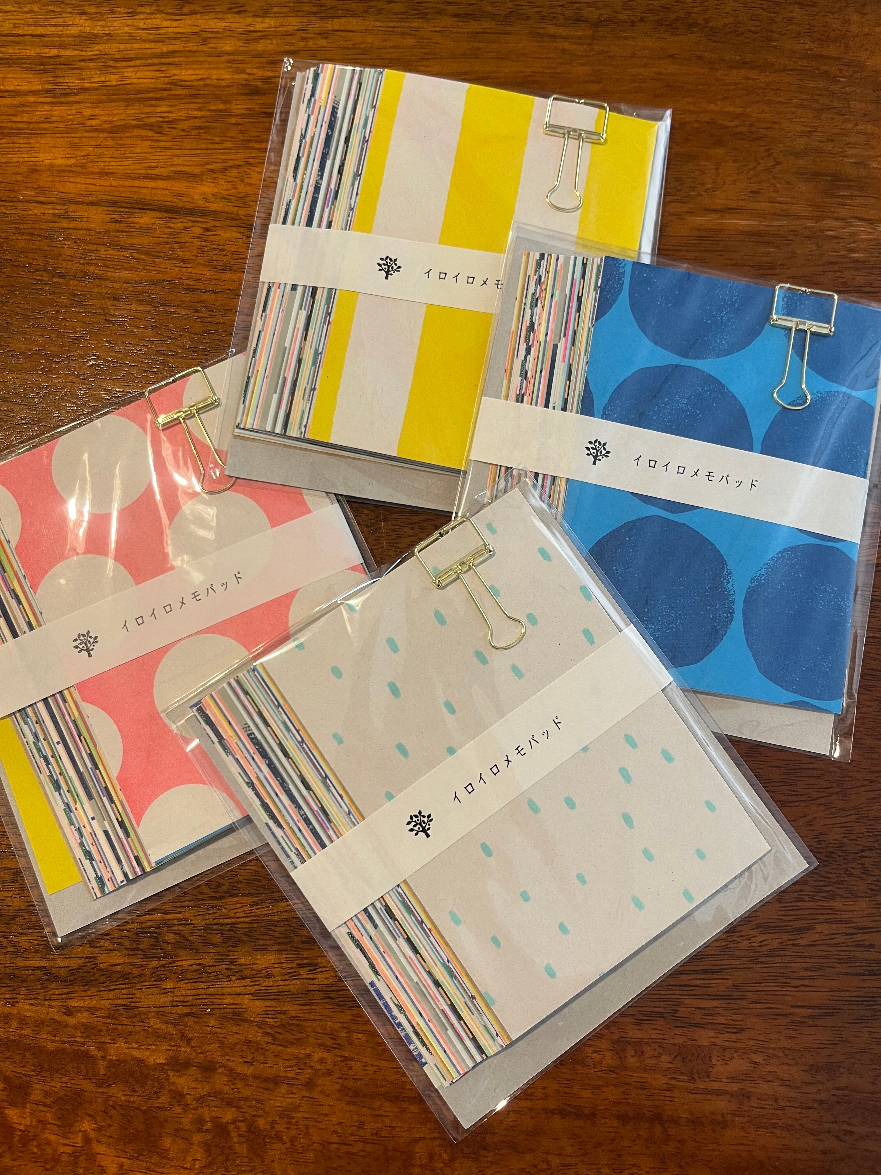 人気のイロイロメモパッドに水玉縞々柄が登場しました。水玉、縞々というシンプルな模様のバリエーションの豊かさを改めて感じています。模様の大きさ、色の組み合わせ、線の表現など、少しずつ試しながら様々な種類を作りました。