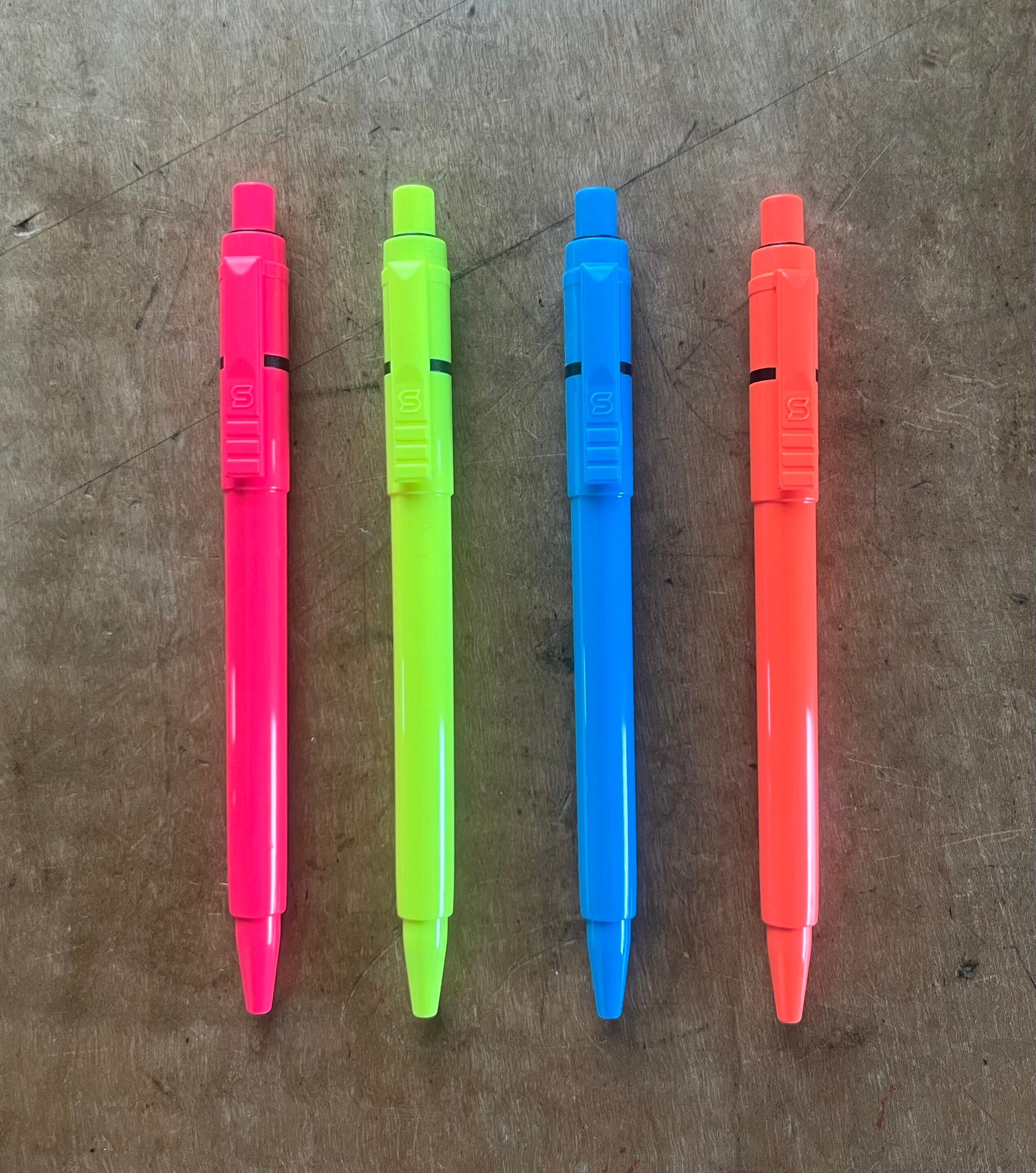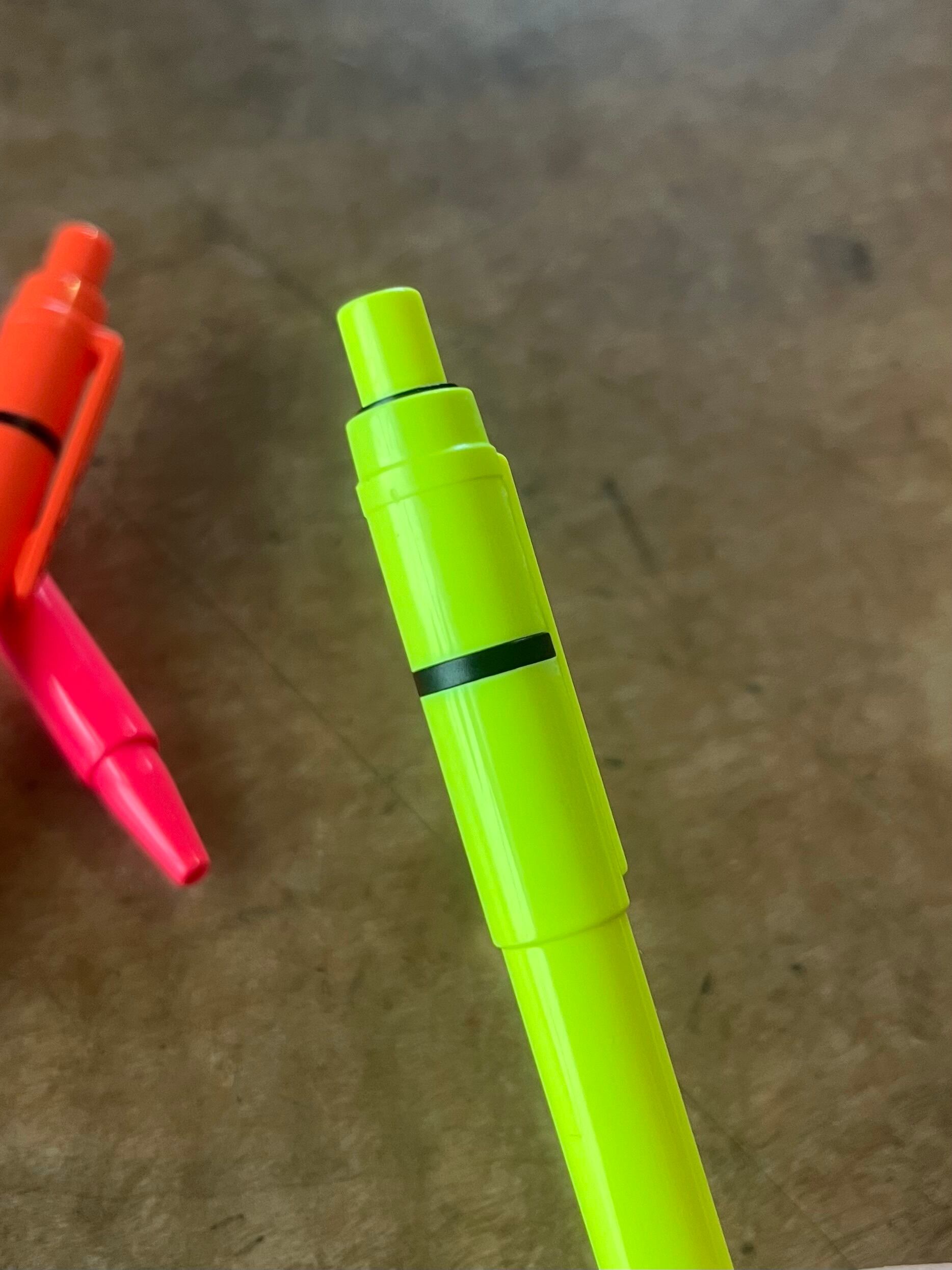 ボタン、ヘッドクリップ、タンク、チップの蛍光色に黒い輪がアクセントになっており、