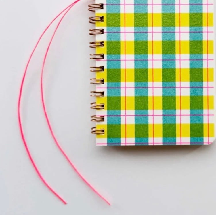 ワックスコード素材の栞の「しっぽ」がついたコンパクトな手のひらサイズのリングノートです。